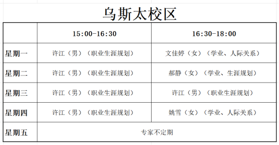 (二)乌斯太校区服务地点:图书馆一楼心理咨询室
